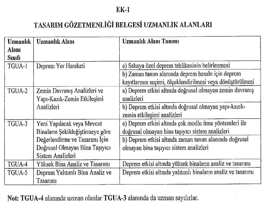 Yukarıda yazılanlar yönetmeliğin tüm maddelerini kapsamamaktadır. Bu sebeple daha detaylı bir inceleme için buraya tıklayın ardından “Türkiye Bina Deprem Yönetmeliği Kapsamında Yapılacak Tasarım Gözetimi ve Kontrolü Hizmetlerine Dair Tebliğ” bağlantısına tıklayın. Yönetmeliğin en altındaki ekler bölümünü de incelemeyi unutmayın.