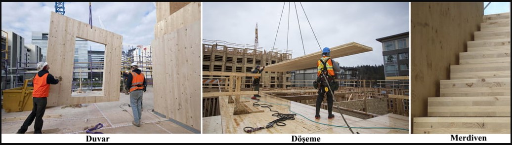 RESİM 1. CLT DUVAR, DÖŞEME VE MERDİVEN KULLANIMI https://yapidergisi.com/capraz-lamine-ahsap-clt-yapi-malzemesinin-strukturel-acidan-degerlendirilmesi/