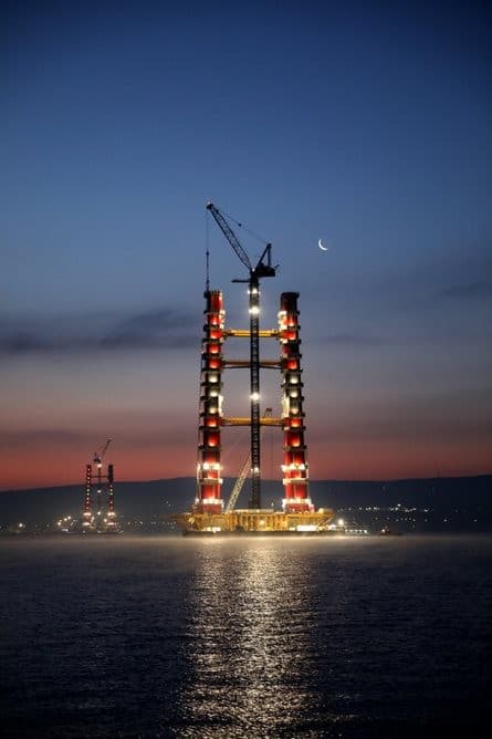 Cumhurbaşkanı Recep Tayyip Erdoğan tarafından 18 Mart 2017’de temeli atılan ve Çanakkale’nin Lapseki ilçesine bağlı Şekerkaya ile Gelibolu’nun Sütlüce mevki’i arasında yapımı süren 1915 Çanakkale Köprüsü’nün ayakları 16 Mayıs Cumartesi günü Cumhurbaşkanı Recep Tayyip Erdoğan’ın video konferansla katıldığı törenle tamamlanmış, 32 bloktan oluşan köprünün ayak yüksekliği de 318 metreye ulaşmıştı.