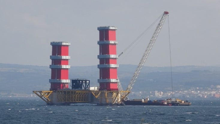 Çanakkale Boğazı’nda inşası aralıksız olarak devam eden 1915 Çanakkale Köprüsü ‘nün deniz içindeki kesonları üzerine dördüncü ve beşinci blokları da yerleştirilmeye başlandı.
