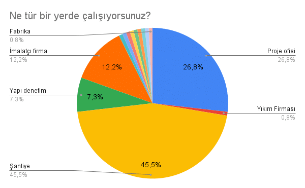 Katılımcıların %45,5’i şantiyede, %26,8’i proje ofislerinde çalıştığını belirtmiştir.