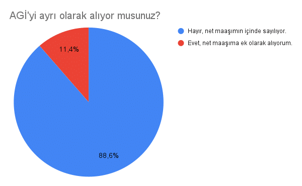 AGİ her ne kadar resmi olarak 2023’te verilmemiş olsa da katılımcıların %11,4’ü maaşlarına ek olarak aldıklarını belirttiler.