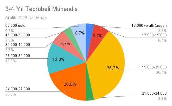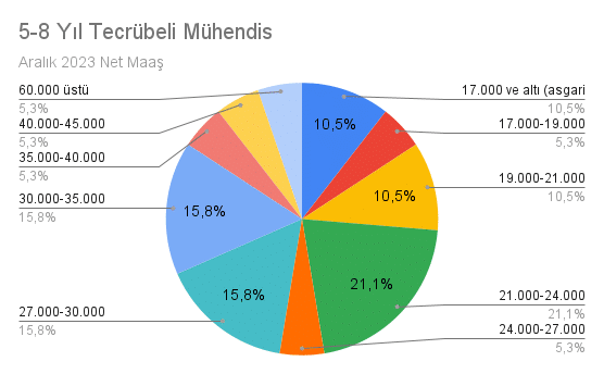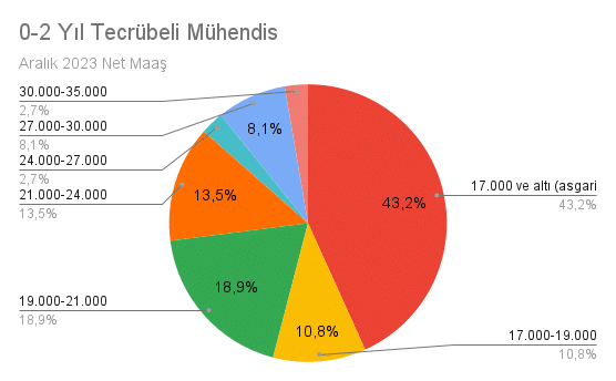 Aşağıda tecrübeye göre yeni yıldaki artış yapılmadan önceki inşaat mühendisleri maaşları grafikleri verilmiştir. Diğer meslek grupları için yeterli örneklem oluşmadığı için yalnızca inşaat mühendisleri için grafik oluşturulmuştur. Ayrıca bu verilerde çalışılan şehir ve çalışma yeri ayrıştırılmamıştır. Maaş oranları verilirken işveren ve çalışmayan olarak belirtilen katılımcıların cevapları grafiklere dahil edilmemiştir. Tecrübeye göre maaş grafikleri aşağıdaki gibidir.