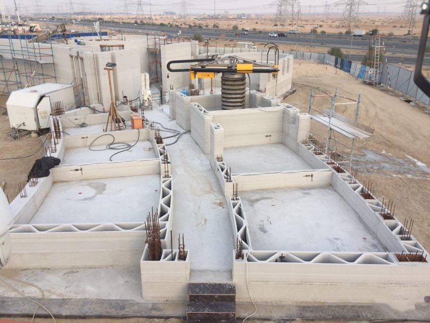 Dünyanın 3D yazıcı ile tamamlanmış olan en büyük binası Dubai’de yer almaktadır. Dünya’nın en büyük robotik firmalarından biri olan Apis Cor öncülüğünde gerçekleştirilen bu çalışmada 3D yazıcı ile 2 katlı ofis binası inşa edildi. 9,5 metre yüksekliğe ve toplamda 640 m² kapalı alana sahip olan bu bina, inşaat mühendisleri tarafından büyük bir ilgiyle karşılandı. Sütunlar ve döşemelerin oluşturulması için sadece 1 adet 3D baskı makinesinin kullanıldığını belirten şirket yetkilileri 3D yazıcı malzemeleri dışında sadece belirli bölgelerde inşaat demiri kullandıklarını belirtti.