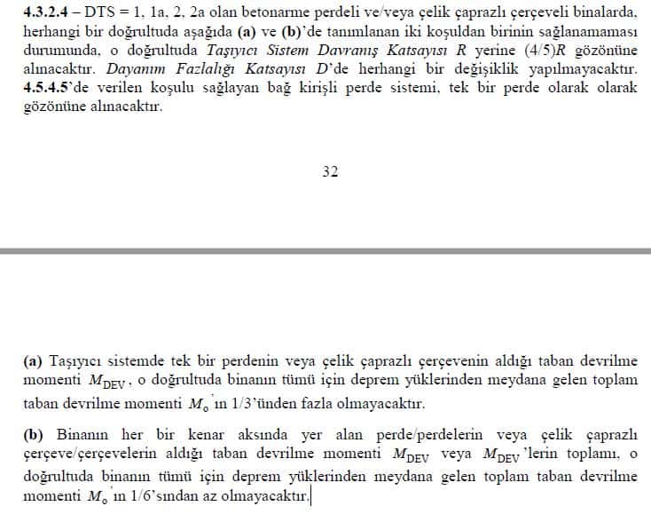 TBDY 2018 madde 4.3.2.4 (a) ve (b) alt maddelerinde yapılarda R deprem azaltma katsayısına iki kriter ile 4/5 oranında bir azaltma getirmiştir. Buradaki madde yazımındaki farklı algılamalar farklı yorumlara sebep olmaktadır.
