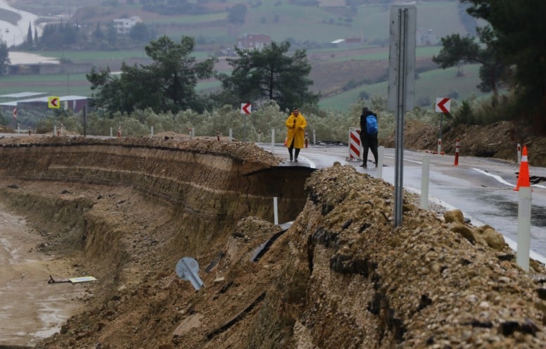 Adana’da 2 gündür süren kuvvetli sağanak nedeniyle 6 ilçeyi il merkezine bağlayan karayolunda çökme meydana geldi. Çökme nedeniyle uzun araç kuyrukları oluştu.