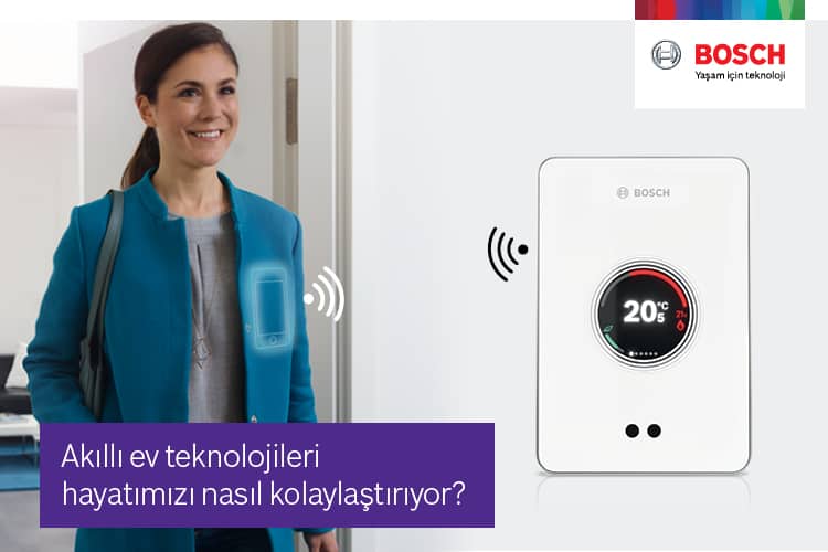 Bosch Termoteknoloji, 1895 yılından bu zamana kadar edindiği tecrübesini teknolojik tasarımlar ile buluşturuyor. Kombiniz ile dilediğiniz zaman iletişim kurma olanağı veren akıllı oda termostatını kablosuz ağ üzerinden yönetebilirsiniz. Bosch kablosuz oda termostatı, oda sıcaklığını istenen düzeyde tutmakla birlikte siz eve gelmeden de evinizi ısıtabiliyor. Akıllı termostat, size ısı kontrolünü cep telefonu üzerinden yapma seçeneği sunuyor. Cep telefonuna ya da tablet gibi diğer dijital cihazlara yükleyeceğiniz bir program ile kombinizle istediğiniz zaman iletişim kurabiliyorsunuz. Uygulama sayesinde oda termostatı sizin kombiyi kullanım alışkanlığınız hakkında da bilgi sahibi oluyor. Böylece daha fazla enerji tasarrufu yapmanıza yardımcı oluyor.