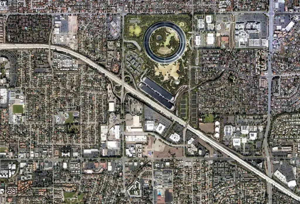 Tasarımı ile uzay gemisini andıran bu kampüs çevresine kurulan orman ve 700 bin güneş paneliyle karbon salınımını minimuma indirmeyi hedeflemiştir. Apple’ın kurucu ortağı ve CEO’su Steve Jobs kampüsün bir doğa sığınağına benzemesini istemiştir ve Norman Foster yapıyı devasa bir daire şeklinde tasarlamıştır. Medya tarafından ‘ uzay gemisi’ benzetmesi yapılmış ve Apple bu ana kampüs binasına ‘ The Ring’ ismini vermiştir.
