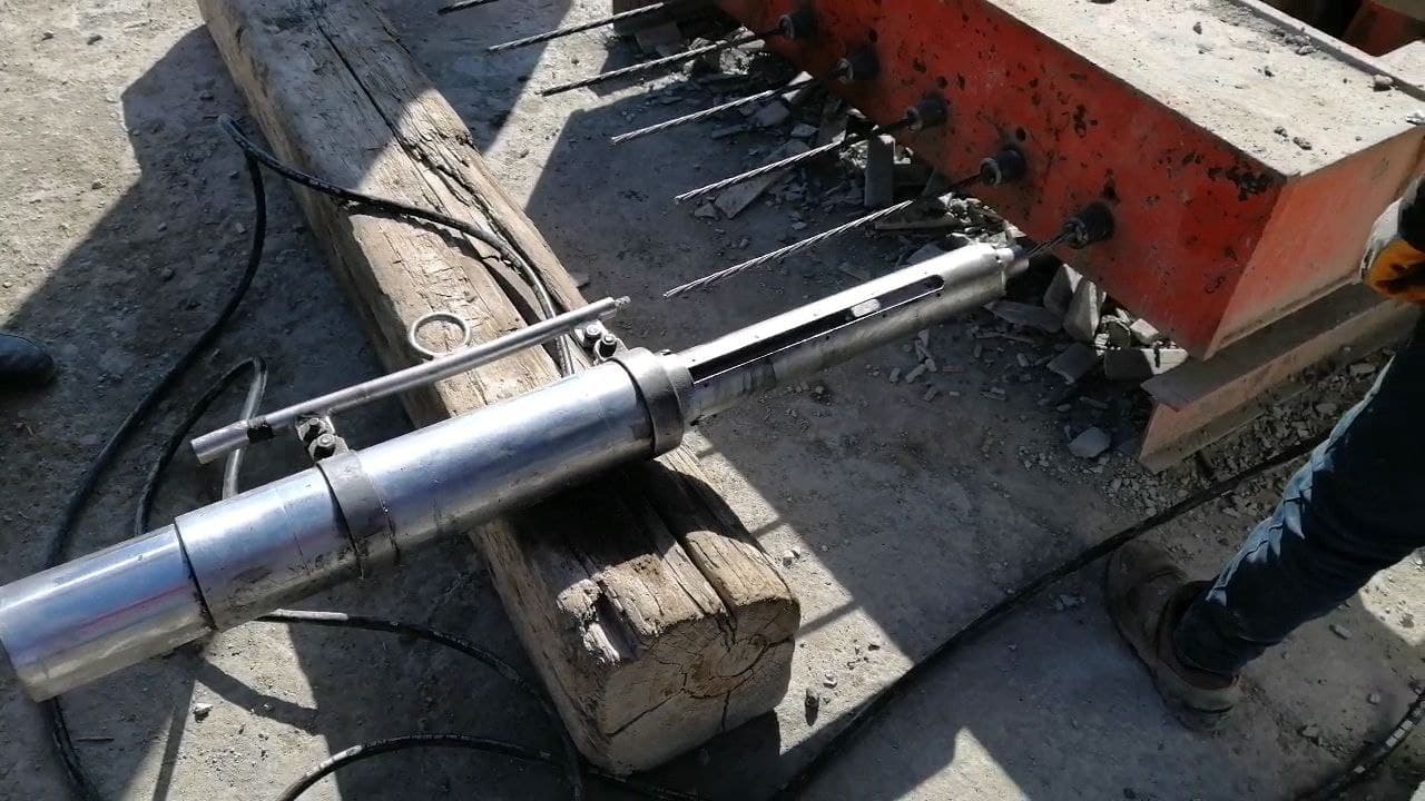 - Hidrolik krikolar kullanılarak, proje aşamasında hesaplanan basınç kuvvetleri altında çelik halatlar gerilir.