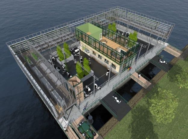 Dünyanın ilk yüzen süt ürünleri çiftliğinin yapımına, ülkenin ikinci büyük kenti Rotterdam’daki Merwehaven’da kısa süre içinde başlanıyor.