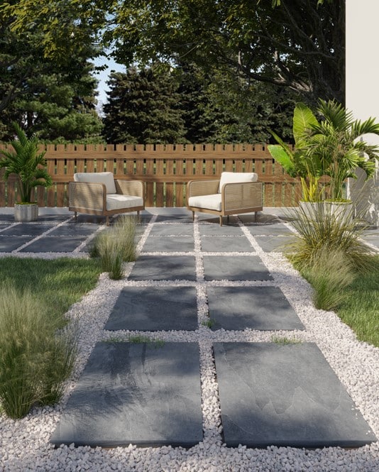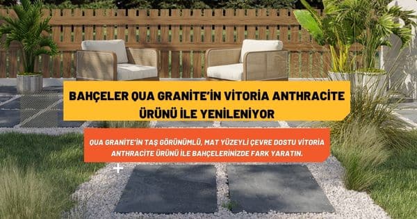 Qua Granite’in taş görünümlü, mat yüzeyli çevre dostu Vitoria Anthracite ürünü ile bahçelerinizde fark yaratın.
