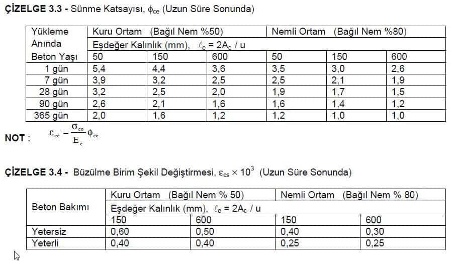 (TS 500’ün 6.3.4. Genleşme, Büzülme ve Sünme Etkileri başlığı altında şöyle detaylar verilmektedir: