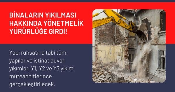 - Yıkıma başlanmadan önce belediyelerden yıkım ruhsatı alınacak.