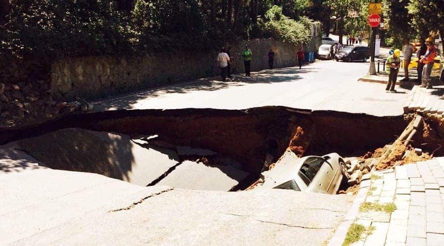 DHA’nın haberine göre, olay, Üsküdar Kısıklı Mahallesi Büyük Çamlıca Caddesi’nde saat 15.00 sıralarında meydana geldi. Henüz belirlenemeyen bir nedenle Çamlıca tepesine çıkan yol çöktü. Park halinde bulunan bir otomobil oluşan çukura düştü. İhbar üzerine olay yerine çok sayıda polis ve itfaiye ekibi yönlendirildi. Polisler, yolu iki yönde trafiğe kapatarak güvenlik önlemi aldı.