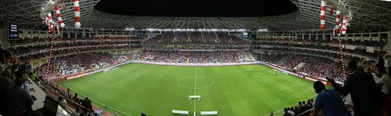 Antalyaspor’un Beşiktaş maçıyla kapılarını açan 33 bin kişilik yeni stadı, antik çağlardaki arenayı andırıyor. Türkiye’deki tek tam dairesel stat dünyanın en fazla elektrik üreten yapısıyla dikkat çekiyor. 1145222_dd9c0f042ec09f936df8fecd133e18fb