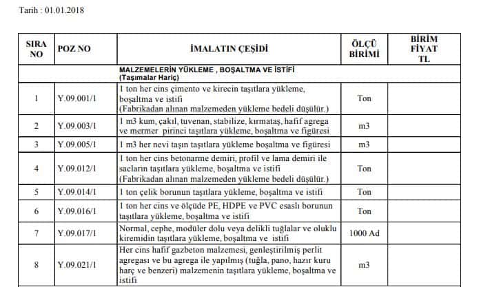 - 2019 yılı birim fiyatlarını pdf formatında indirmek için tıklayın (9.2mb)(Bakanlık tarafından yayımlanan orjinal fiyat listesi)