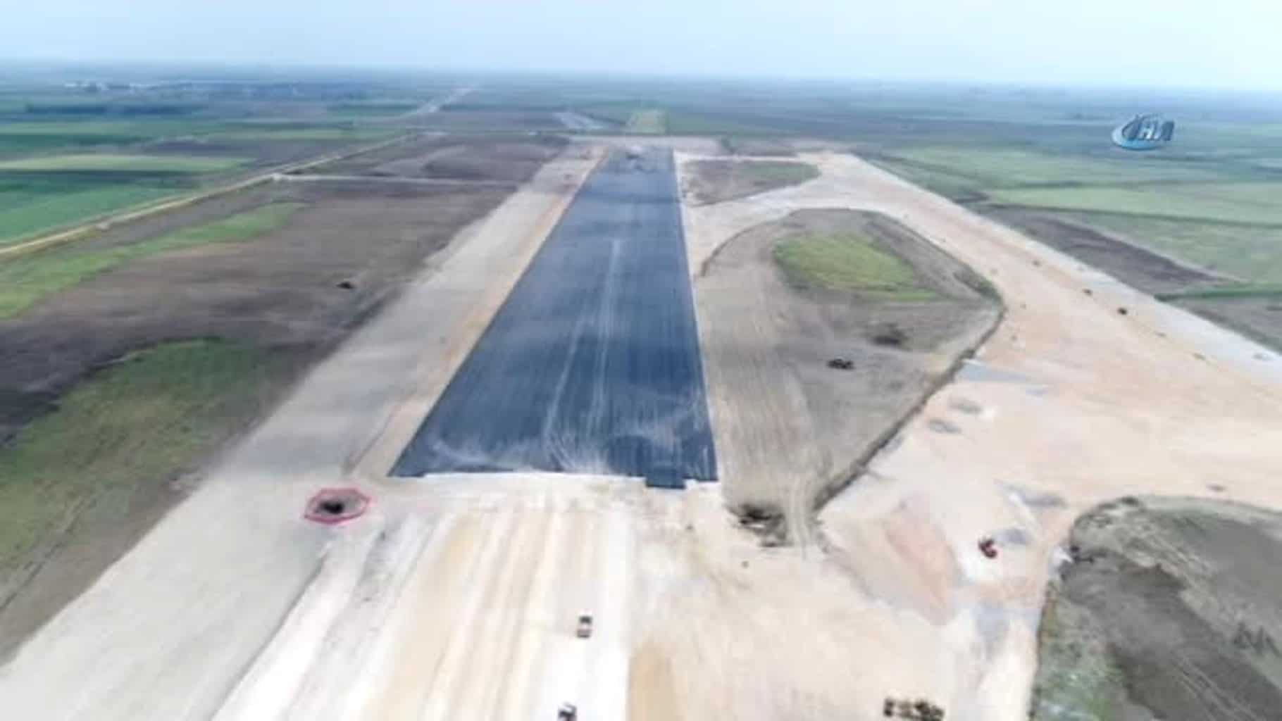 Her biri 3 bin 500 metre uzunluğunda ve 60 metre genişliğinde iki adet piste sahip olacak havalimanındaki çalışmalar drone ile havadan görüntülendi. Beton dökme işleminin devam ettiği pistte hummalı bir çalışma yürütülürken, yıl sonuna kadar bütün alt yapı çalışmalarının bitmesi bekleniyor.