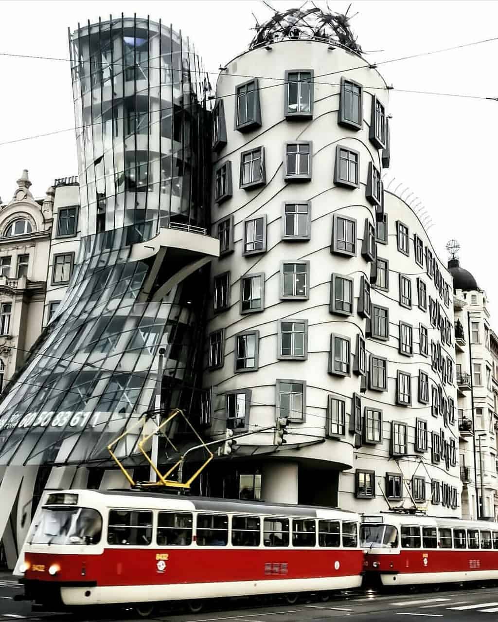 Frank Gehry tarafından Prag’ın şehir merkezine tasarlanan Dans Eden Ev (Dancing House), 1992-1996 yılları arasında tamamlanmıştır. Hollywood’un 1930’lu yıllardaki ünlü dans eden çifti Fred Astaire ve Ginger Rogers’ı andırdığı için Dans Eden Ev ismi verilen yapı, postmodern mimarinin önemli örneklerinden.