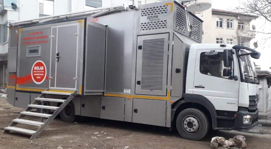 Elazığ’da yaşanan 6.8 büyüklüğündeki depremde hasar gören binaların çökme riskinin olup olmadığı Mobil Bina Analiz ve Test Laboratuvarı (MOLAB) ile kontrol ediliyor.