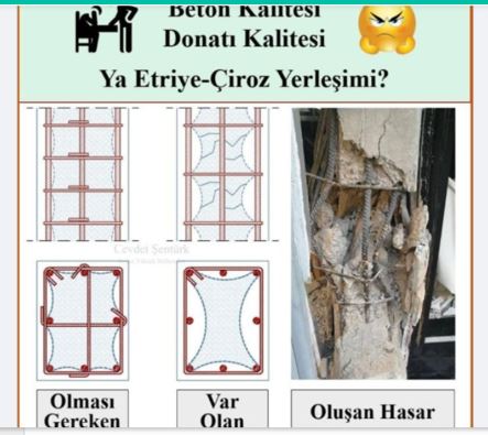 Diğer bir konuya geçiyorum; özellikle depremlerde kolonların ve kirişlerin mesnetlerinde kesme gerilmelerine bağlı ağır hasarlar olabilmektedir. Bu çeşit hasarları önleyebilmek için bilindiği üzere etriyeler ve çirozlar önem kazanmaktadırlar.