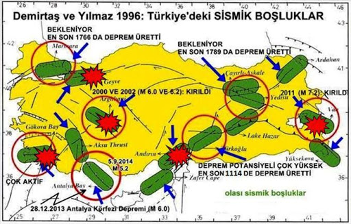 - Şiddeti büyük depremlerin yenilenme süreleri ve düzenleri,