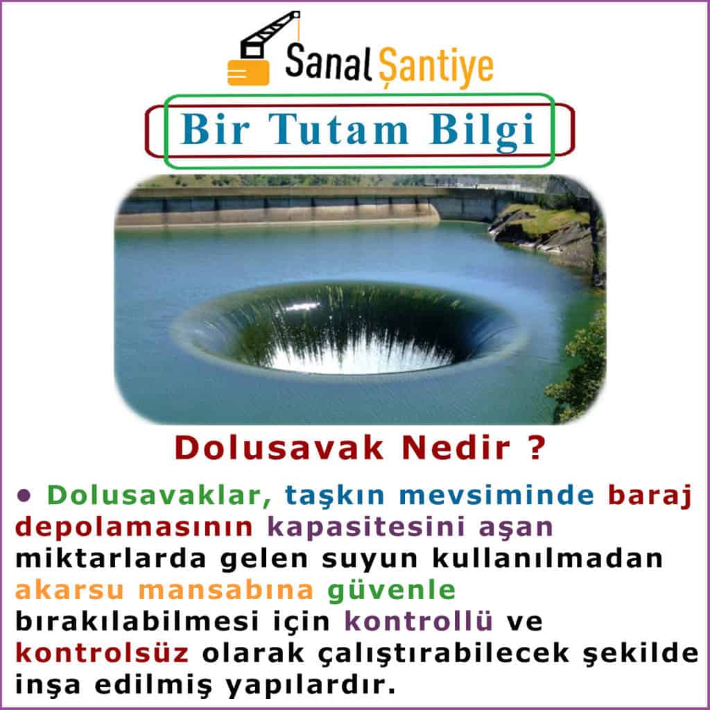 Dolusavak, barajların ömürleri boyunca tam kapasite ile kullanılmaları düşük bir olasılık bile olsa, dolusavaklar baraj güvenliği için en önemli yapılardır. Dolusavaklar, taşkın mevsiminde baraj depolamasının kapasitesini aşan miktarlarda gelen suyun kullanılmadan akarsu mansabına güvenle bırakılabilmesi için kontrollü ve kontrolsüz olarak çalıştırabilecek şekilde inşa edilmiş yapılardır.