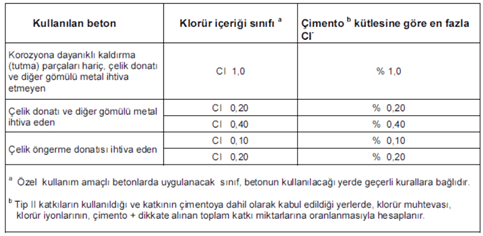 TS EN206-1 Standardına göre betonun klorür içeriğinin sınırlandırılması