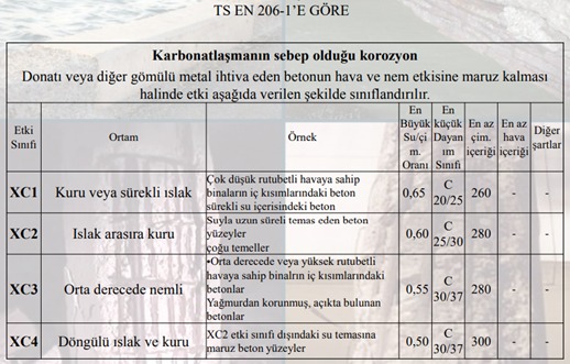 Karbonatlaşmanın sebep olduğu korozyon ( TS EN206-1’e göre)