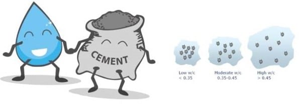 Düşük su-çimento oranı uygulanarak düşük geçirgenliğe sahip beton üretilebilir ve bu da daha iyi donatı koruması sağlayabilir. Çoğu uygulama için su/çimento oranı 0,45 ile 0,60 arasında değişmektedir.