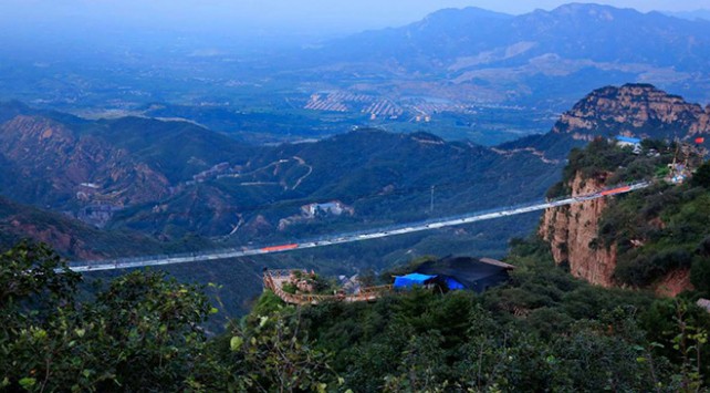 Dünyanın en uzun cam köprüsü, Çin’in Hıbey eyaletinde tamamlandı. 218 metre yüksekliğindeki köprüye aynı anda 500 kişinin çıkmasına izin verilecek.