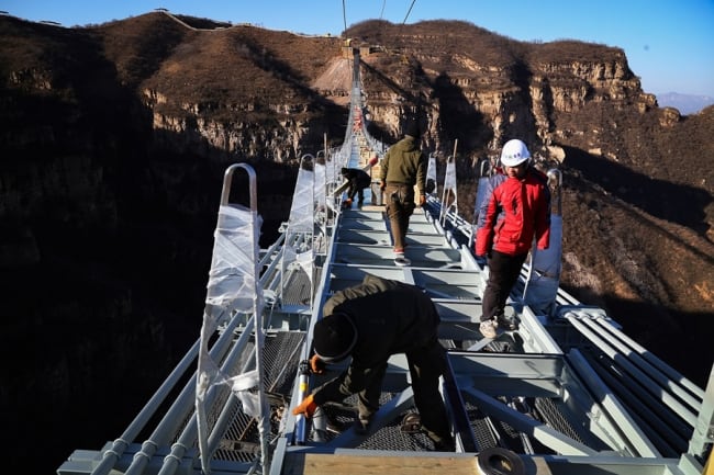 Her biri 4 santimetre kalınlığındaki bin 77 cam panel kullanılarak yapılan, 70 ton ağırlığındaki köprünün iki gün sonra açılması planlanıyor.