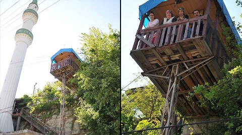 Bartın Amasra’da 20 metre yüksekliğindeki direğin üzerine yapılan kulübe ilgi çekiyor. Uğurlar köyünde yoldan 20 metre yükseklikteki evde yaşayan Mustafa Toprakdelen (45), daha önce aşçılığını yaptığı inşaat şirketinden aldığı elektrik direğiyle evinin önüne kulübe inşa etti. Evin önüne kadar uzanan “T” şeklindeki demir direğin üzerine 6 metrekarelik sac yerleştiren Toprakdelen, çatısını yaptığı, zeminini tahtayla kapladığı kulübeye masa ve sandalye koydu. Toprakdelen’in misafirlerini ağırladığı kulübe, büyük ilgisi çekiyor. Toprakdelen, köye gelen misafirlerin 4 yıl önce yaptığı kulübeyi görünce şaşırdıklarını söyledi. Komşularının yanı sıra köye ilk kez gelen ve kulübeyi görmek isteyen kişileri de misafir ettiğini anlatan Toprakdelen, şöyle konuştu: “20 yıllık hayalimi gerçekleştirdim. Kulübeyi görenler bana ‘Karadeniz zekâsı yine kendini göstermiş, leylek gibi direk üzerine yuva yapmışsın’ diyor. Sağlık sorunları nedeniyle çalışamadığım için günün büyük bölümünü eşim ve çocuklarımla burada geçiriyorum.”