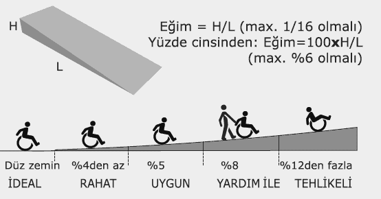 Engelli rampasının eğimi en fazla %8 olmalıdır