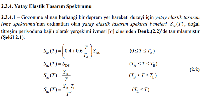 Burada x yönünde taban kesme kuvveti bulmak için öncelikle SaR(Tp) azaltılmış tasarım spektral ivmeyi hesaplayalım;