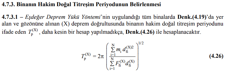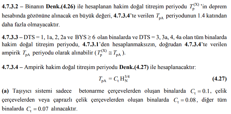 Buradan veya modelinizden aldığınız doğal titreşim periyodunun ayrıca denklem 4.27 sağlaması gerekmektedir.