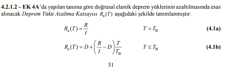 Şimdi de öngörülen süneklik kapasitesi ve periyoda bağlı Deprem Yükü Azaltma Katsayısı Ra(T) hesaplayalım;