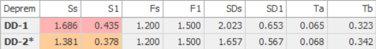 Bu değerlerden DD-2 (Tasarım depremi) kutucuğundakiler alınır.