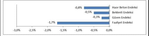 Raporun sonuçlarını değerlendiren Türkiye Hazır Beton Birliği (THBB) Yönetim Kurulu Başkanı Yavuz Işık, “Faaliyet Endeksi 6 aydır pozitif tarafta iken kasım ayında daralarak negatif tarafa geçmiştir. Hem Beklenti hem de Güven Endeksi kasım ayında aşağı yönlü hareket etmiştir. Endeks değerlerinin tamamında görülen azalma sonrasında hazır beton endeksi eşik değerin altına inmiştir.” dedi.