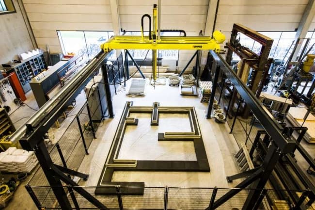 İnşaat firması Van Wijnen’deki yöneticilerden Rudy van Gurp, “Artık ev inşaatında kullanılan kalıplara ihtiyacımız yok; dolayısıyla gereğinden fazla çimento kullanmamız da söz konusu olmayacak” diye konuştu.