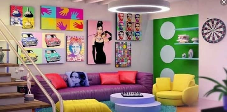Arkadaşlar zaten bahsettiğimiz gibi retro tarz karışıklık ve zıt renklerin birbirine uyumu demiştik. Peki bu karışıklık beynimizi yorar mı? Yoruyorsa bu hangi yanlıştan doğmuş olabilir? Hemen açıklamaya çalışayım, bizim iç mimarlıkta kullandığımız odak noktası diye bir kavram vardır. Siz bu odak noktasını ya aksesuarlara vereceksiniz ya da mobilyalara. Karışık olmasını istediğiniz odak kumaşın deseni mi yoksa tabloların fazlalılığı mı? Bu bir örnekti illa tabloları fazla tutmaya gerek yok belki tablonun fotoğrafını karışık seçeceksiniz belkide diğer aksesuarlar fazla olacaktır.