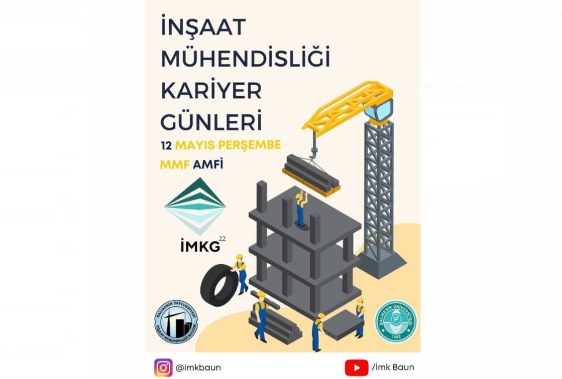 Balıkesir Üniversitesi İnşaat Mühendisliği Kulübümüzün markalaşmış olan İnşaat Mühendisliği Kariyer Günleri etkinliği 12 Mayıs Perşembe günü değerli konuşmacılarımız ile Balıkesir Üniversitesi Mimarlık Mühendislik Fakültesi Amfisinde gerçekleşecektir.