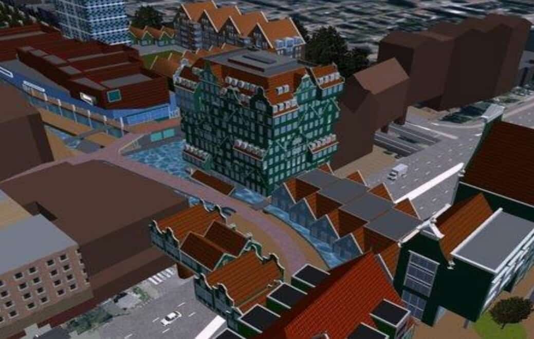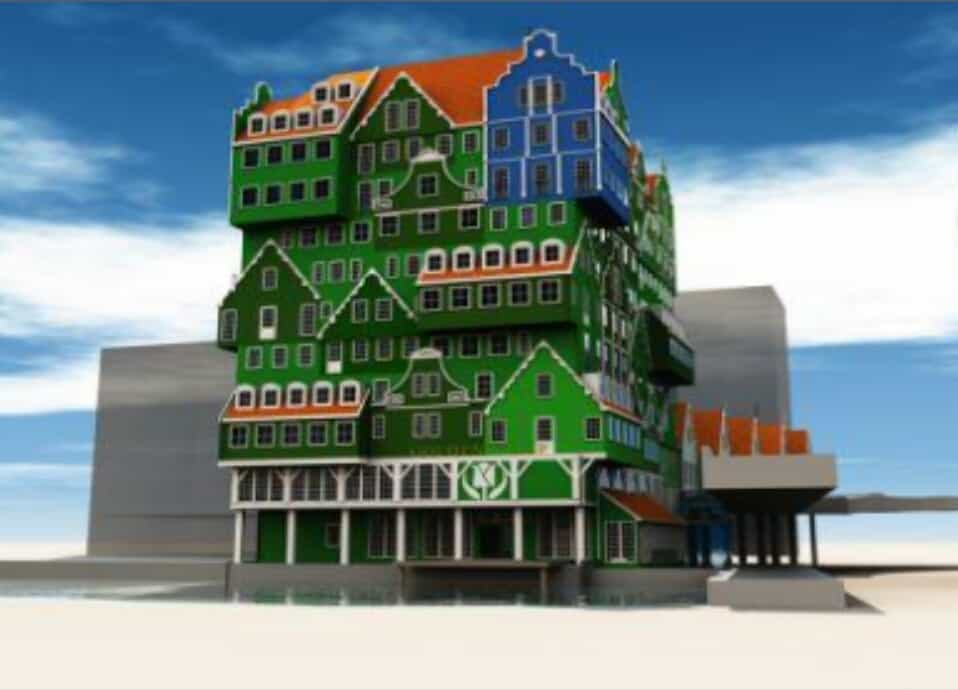 3 Boyuttaki kütle ebadı mevcut dokulardan oldukça farklıdır. Çevrede az katlı bir yapılaşma varken, Inntel Hotel Zaandam çok katlıdır. (12 kat)