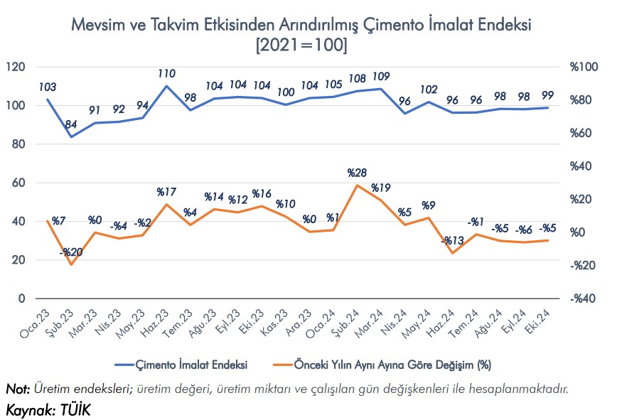 2024 yılının ekim ayında bir önceki yılın aynı ayına göre %4,9↓ düşüş, bir önceki aya göre %0,7↑ artış göstermemiştir. 2024 ocak-ekim döneminde bir önceki yılın aynı dönemine göre ortalama %2,4↑ artış göstermiştir.