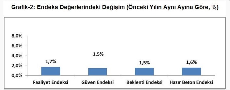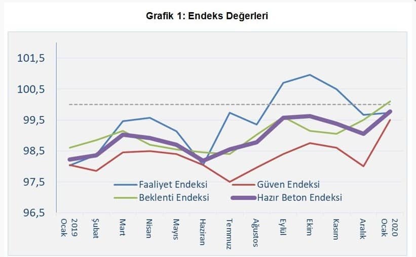 Hazır beton endeksi 2020 ocak ayı raporuna göre, bütün endeksler önceki yılın aynı dönemine göre artış sergiledi. Geçen yılın aynı ayına kıyasla geride bırakılan ocak ayında sektör bütün göstergelerde iyiye gittiği bildirildi. Bir yıl öncesine kıyasla 2020 ocak ayı daha iyi olmakla birlikte aralık ayına kıyasla sektör 2020 yılına hızlı bir giriş yapamamış göründü.