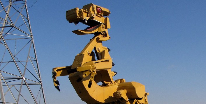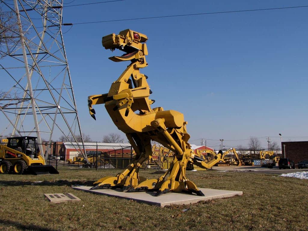 Heykel, bir makina şirketinin bağışladığı 1946 model Caterpillar greyder, yükleyici ve diğer makina parçalarından yapıldı.