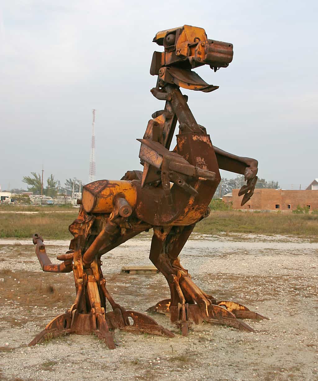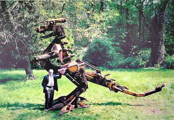 Arnold, yüzlerce parça arasından en uygununu seçerek metal ark kaynağıyla birleştirdi. Uzaktan bakıldığında dinozora benzese de, yakınlaşıldığında mekanik bağlantıları görmek mümkün.