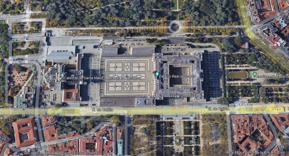 Madrid Kraliyet Sarayı, Avrupa’nın en büyük ormanlarından birinin içerisine inşa edilmiş muazzam bir yapıdır. İçerisinde bir çok tarihi eserin bulunduğu bir müze konumunda ziyarete de açıktır. Bununla birlikte içeride fotoğraf çekilmesine kesinlikle izin verilmemektedir.
