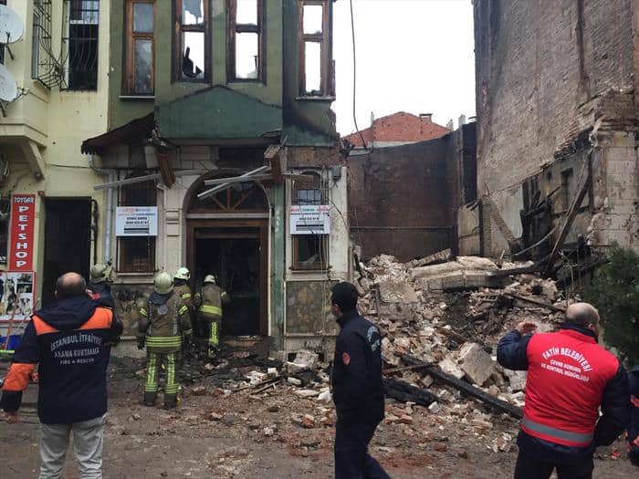 İstanbul’un Fatih ilçesinde dün gece yanan ve itfaiye ekipleri tarafından söndürülen bir bina bu gün kısmen çöktü. Çöken binanın enkazından çıkarılan 2 kişi sağlık ekiplerince hastaneye kaldırıldı. Ayrıca çöken binadan iki kişinin de cesedi çıkarıldı.