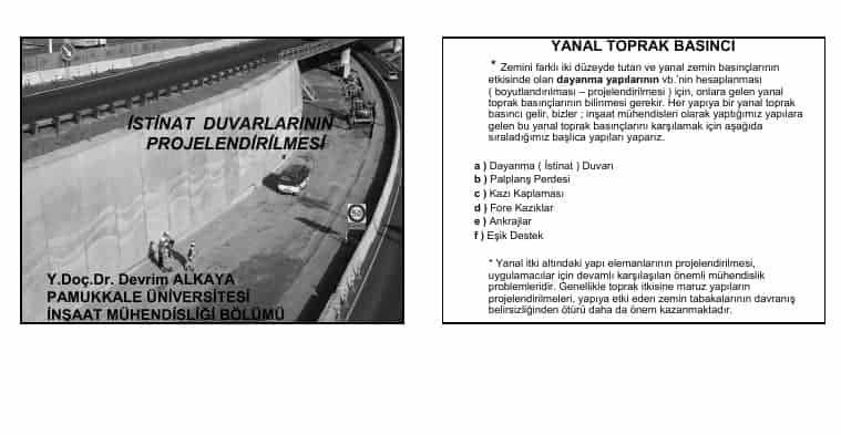 Y.Doç.Dr. Devrim ALKAYA’nın hazırladığı İSTİNAT DUVARLARININ PROJELENDİRİLMESİ pdf formatında sunumu .