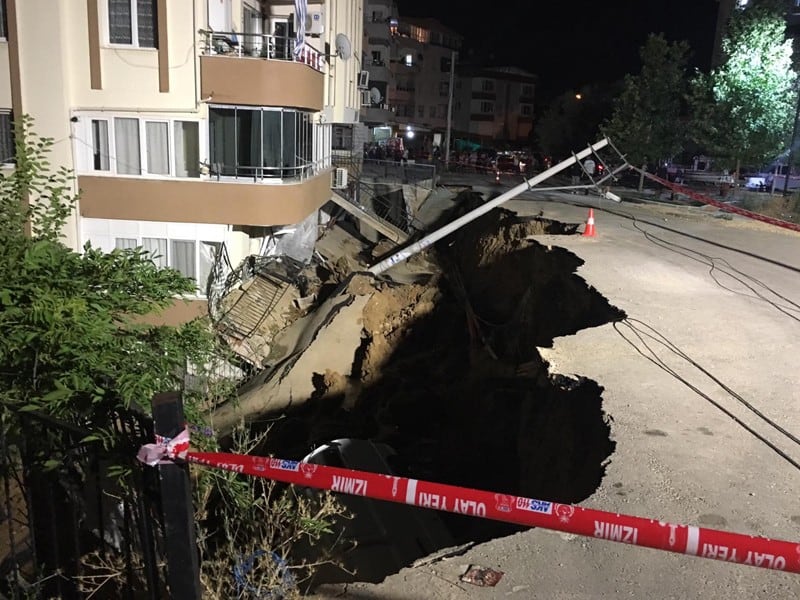 Bir anda meydana gelen olayda apartmanların bulunduğu kısma doğru çöküntü gerçekleşti. Korkulu anların yaşandığı yerin adresi İzmir Torbalı olurken maddi zarar oluştu. Çökme sonrasında yolda meydana gelen göçük sebebiyle toprak ve kaya parçaları yuvarlandı. Apartmanın alt dairelerinin dış cephelerinde hasarlar oluştu. Ayrıca park halinde olan bir minibüste açılan çukurun içine düştü. Yarılan yolun kenar kısmındaki su borusunda da patlak oluştu. Olay yerine gelen itfaiye ekipleri incelemelerde bulunurken polis güvenliği sağladı. Yolun apartmanın üst kısmında bulunduğu ve uzun zamandır sorunu olduğu belirtiliyor. Ayrıca olayda herhangi bir ölüm ya da yaralanma durumunun yaşanmadığı da açıklandı.